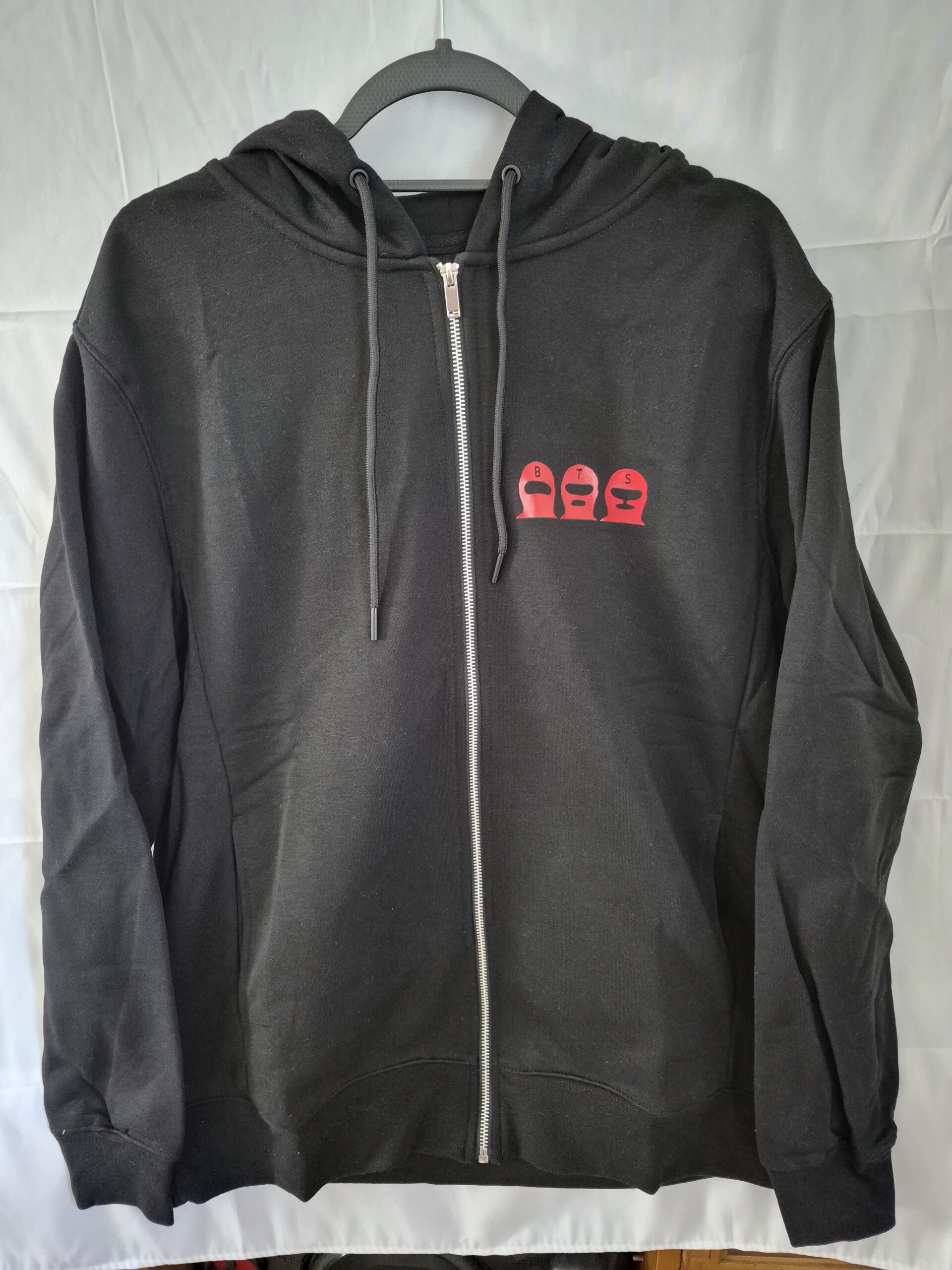 Hoodie jumper. Comes in red, black and white